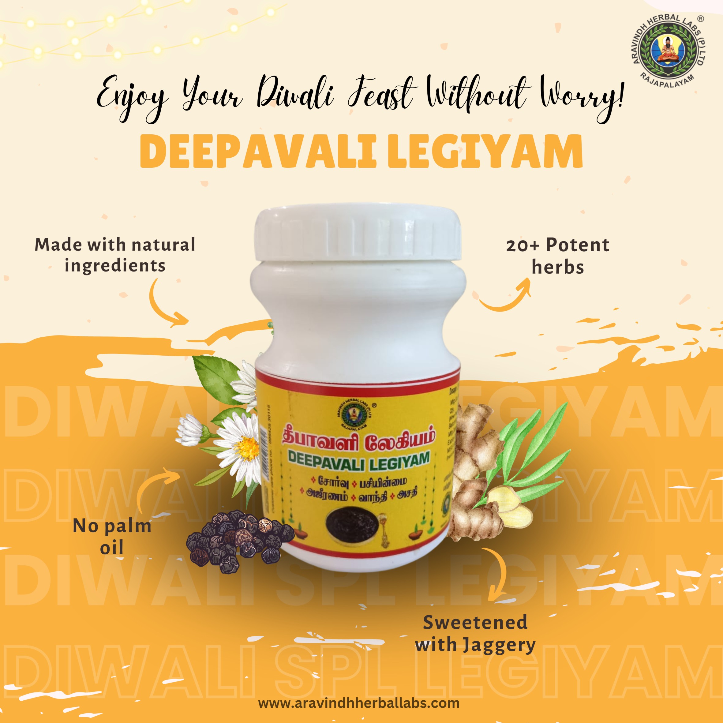 It’s Deepavali season! A time for dazzling fireworks, radiant diyas, and of course, the onslaught of sweets that make your taste buds dance and your tummy, well… a tad rebellious. Enjoy Aravindh Herbal’s Deepavali Legiyam – our ancient Siddha recipe’s sassy answer to all those “I shouldn’t have eaten that last laddu” moments!